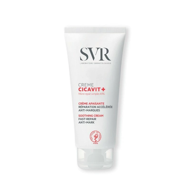 Appliquer la crème Cicavit+ SVR sur les zones concernées propres et sèches 2 fois par jour, jusqu’à réparation complète. Peut s’appliquer en couche épaisse.
