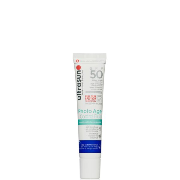 ULTRASUN PHOTO AGE CONTROL FLUID SPF50 est idéal pour les peaux sensibles (protection solaire et hydratation du visage, du cou et du décolleté) et pour peaux à tendance acnéique : non comédogène et non allergique (ne provoque pas de colmatage ni de réaction allergique).